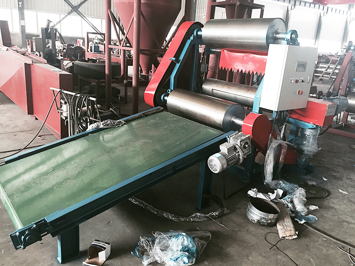 使用再生膠自動冷卻稱量下片機有機器自動切斷膠片,并且有輸送帶將膠片輸送出來,工人遠(yuǎn)離機器,提高安全系數(shù)。